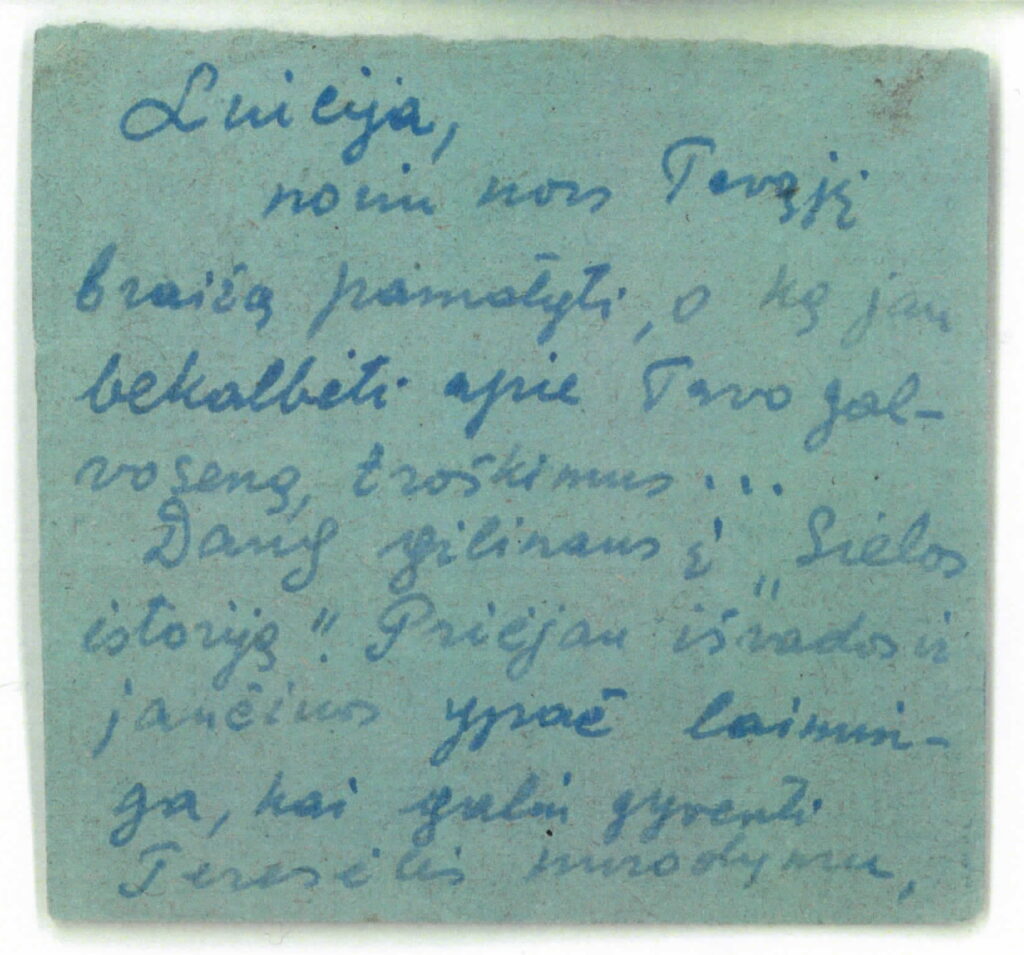 Sibiro tremtyje rašė maldas ant tošies gabalėlių, laikraščio skiaučių, cemento maišų. Maldas sugrupavo ir sudėjo į mažą knygelę. 1953 m. Vasario 16-ąją perdavė draugei su prierašu: „kad galėtumei geriau su mumis jausti, mąstyti, garbinti Viešpatį, siunčiame šią maldų knygelę.“