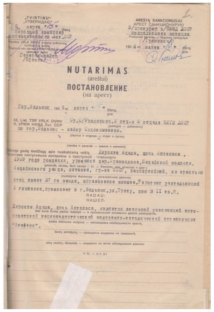 Nuo 1939 metų vasario 26 dienos Adelė Dirsytė dirba mokytoja Kaune, Vaikelio Jėzaus draugijos Mergaičių amatų-ruošos mokykloje.